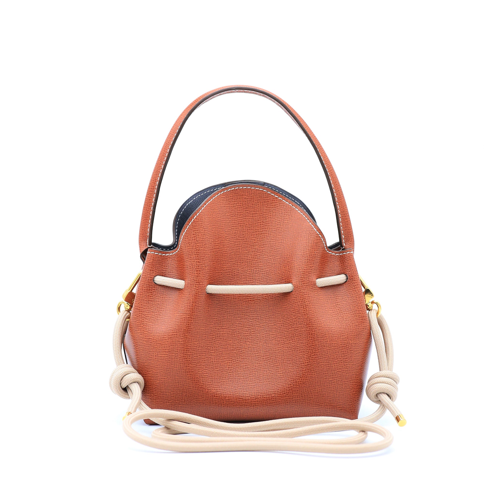 Notre Mini Bucket Saffiano est notre première capsule ! Une jolie robe Cognac, un doublure gris souris et une piqûre écrue, le tout donnant un sac aussi chic qu'intemporel.